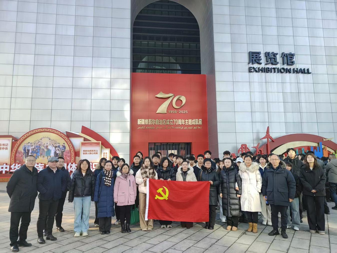 为庆祝新疆维吾尔自治区成立70周年,深化民族团结进步教育,铸牢中华民族共同体意识,12月19日下午,道路桥梁工程学院党总支组织党员教师、入党积极分子、青年团员及学生代表前往乌鲁木齐文化中心展览馆开展“文脉赓续汇合力,民族团结谱华章”主题党日活动。