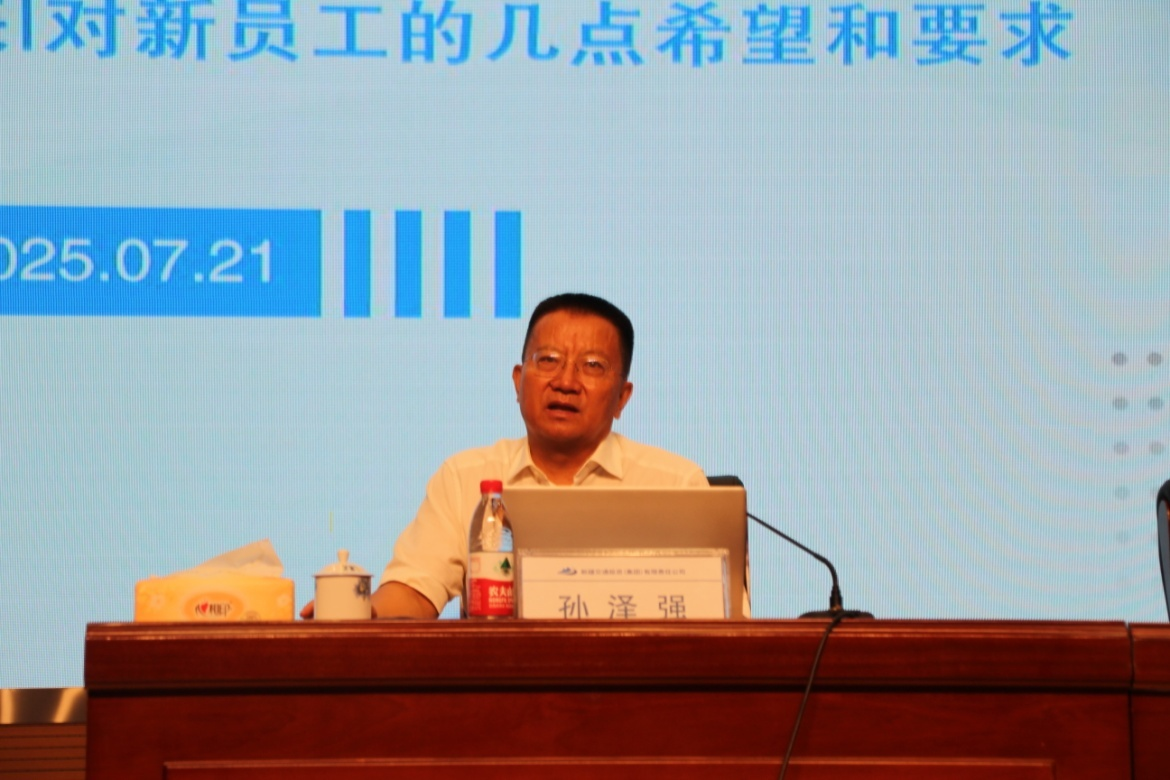 新疆交投集团党委书记、董事长孙泽强同志为本次培训班进行授旗仪式活动。授旗仪式结束后由孙泽强同志给新入职员工讲授 “入职第一课”,在课堂上首先给新员工介绍了交投集团的发展历程和现状、公司未来奋斗目标,最后对本次培训班学员提出四方面要求: 一要善于学习,坚定信念;二要融入交投、传承文化;三要朝气蓬勃,练就本领;四要严于自律,锤炼品质。他希望大家保持清醒头脑,坚定必胜信心,勇于直面挑战,勤于学习实践,以“知不足”的自觉不断“奋进”,以“望远山”的志向持续“力行”,在新疆交投集团这个广阔的舞台上,扎根边疆,筑路架桥,书写“固基筑道”的担当,谱写“相交相投”的融合乐章,为交通强国新疆篇章贡献青春、智慧和力量。