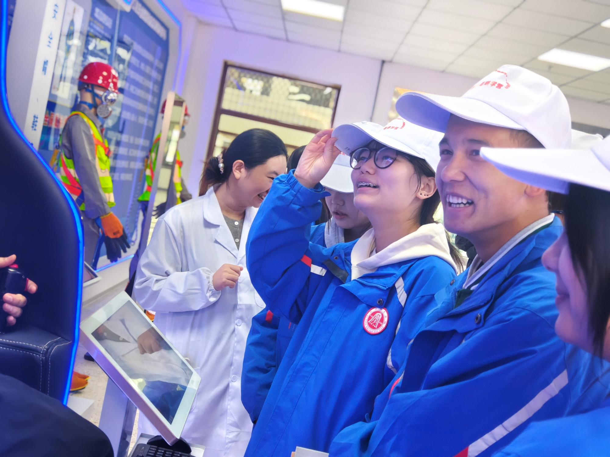 随后,研学队伍先后走进多功能测绘实训中心、无损检测技术应用与推广研究中心、建设安全仿真教学实训区及实训教室。在专业教师的细致讲解与现场演示下,高精度测绘仪器如同 “地理信息的透视镜”,将复杂的地理数据转化为清晰直观的图像;无损检测技术宛如 “工业医生的听诊器”,精准捕捉设备内部隐藏的安全隐患;而沉浸式的建设安全仿真体验,让 “安全第一” 的理念不再是抽象的口号,成为深入骨髓的深刻认知,为同学们上了一堂生动的实践安全教育课。
