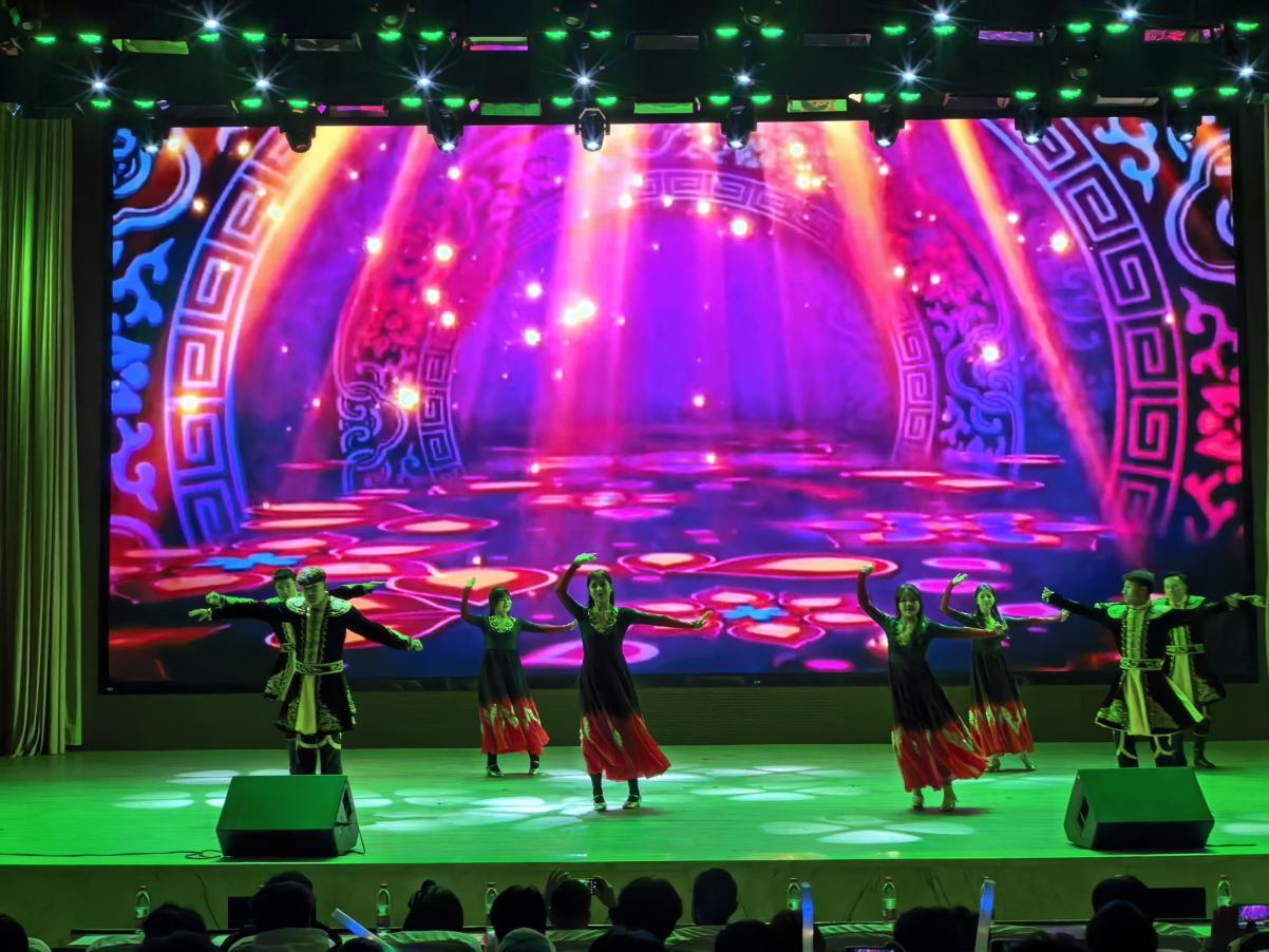 “青春奋斗”聚焦青年担当,《有我》以激昂曲调唱出新时代青年的使命与誓言;朗诵《青春筑路,逐梦天山》,用铿锵话语讲述天山脚下青年筑路的奋斗故事,诠释“精技报国”的学院精神;校艺术团的《街舞串烧》,以动感律动展现青春的热血与活力;《老男孩》,则用熟悉旋律唤起对梦想的执着坚守。“心怀感恩”篇章温情满满,《萱草花》以温柔歌声诠释“母亲花”的牵挂,传递对亲情的感恩;《时间都去哪了》则用真挚嗓音唤起对父母辛劳的体谅,引发全场情感共鸣。