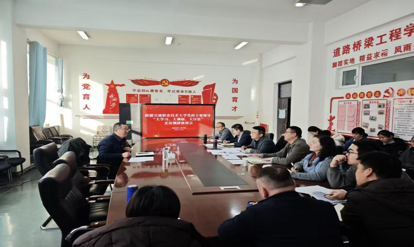 12月25日,校党委书记刘洪波赴道路桥梁工程学院开展“大学习、大调研、大讨论”活动专题调研,聚焦办学定位、人才培养、产业学院建设等工作进行指导,为学院职业本科建设提质增效明确方向。